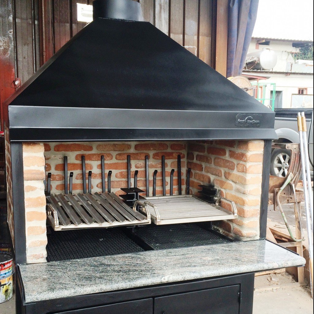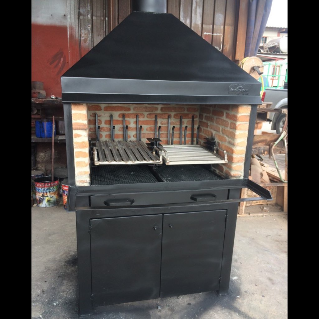Barbecue in ferro e mattoncini con cappa in ferro e aggiunta di ripiano d’appoggio sottostante chiuso con ante. Completo di doppia griglia in acciaio e di davanzale in marmo Le misure sono personalizzabili a seconda delle esigenze del cliente. Richiedi Maggiori informazioni su questo prodotto…